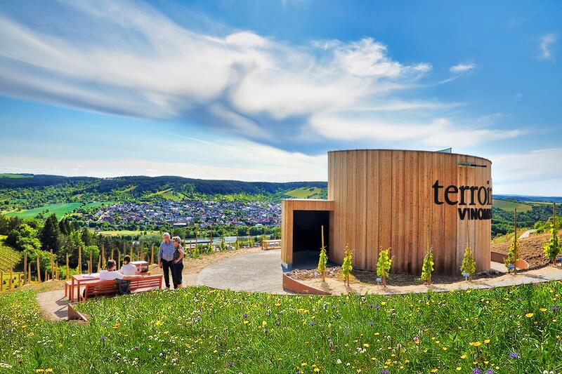 Das terroir f der Weinlage Eibelstadter Kapellenberg empfängt den Besucher nicht nur mit einer grandiosen Aussicht über die historische Altstadt und das Maintal, sondern auch mit einer beeindruckenden Architektur.