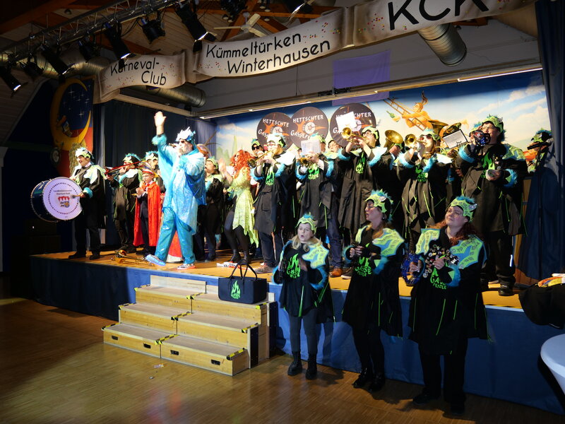 Einen schwungvollen Auftakt setzte Landrat Thomas Eberth, der in den Reihen der Hettschter Gassefetzer zur Trompete griff und damit die 28. Ausgabe des Landkreisfaschings eröffnete.