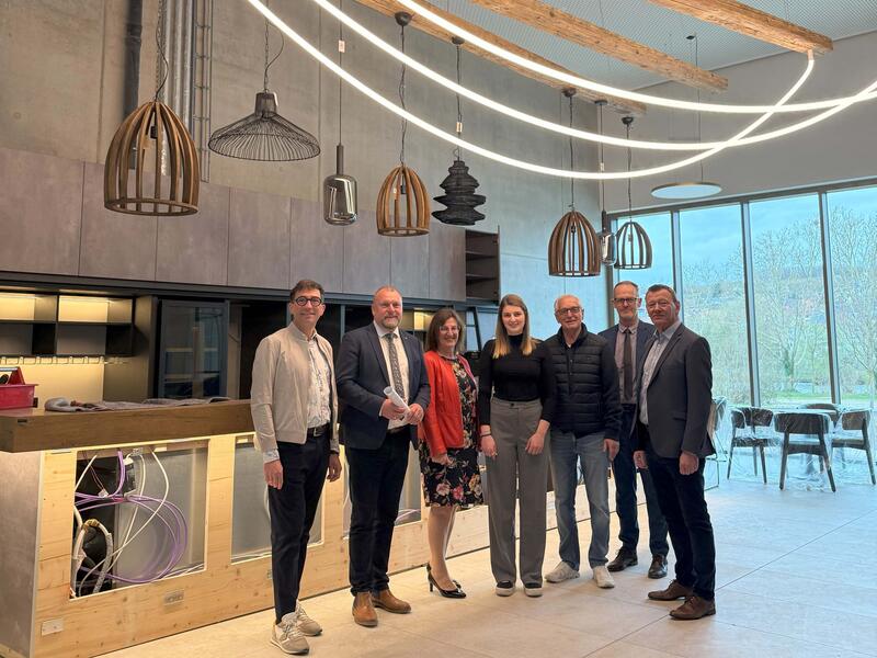 Die Stadt Ochsenfurt ist um ein touristisches Ziel reicher. Noch im April öffnet das Tagungs- und Weinhotel Meintz für seine Gäste. Kurz vor Fertigstellung der letzten Arbeiten besichtigte Landrat Thomas Eberth gemeinsam mit Ochsenfurts Bürgermeister Peter Juks und Investor Joachim Beck den Neubau in der Floßhafenstraße, um Geschäftsführerin Eva-Maria Meintzinger einen guten Start zu wünschen. Auch der Geschäftsführer der Fränkisches Weinland Tourismus GmbH, Marco Maiberger, begleitete Landrat und Bürgermeister – denn genau solche touristischen Angebote werden im fränkischen Weinland dringend gebraucht.