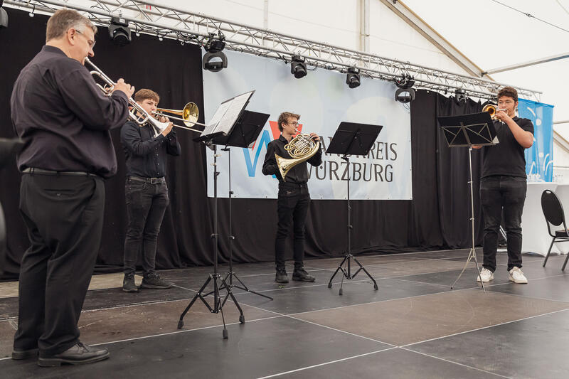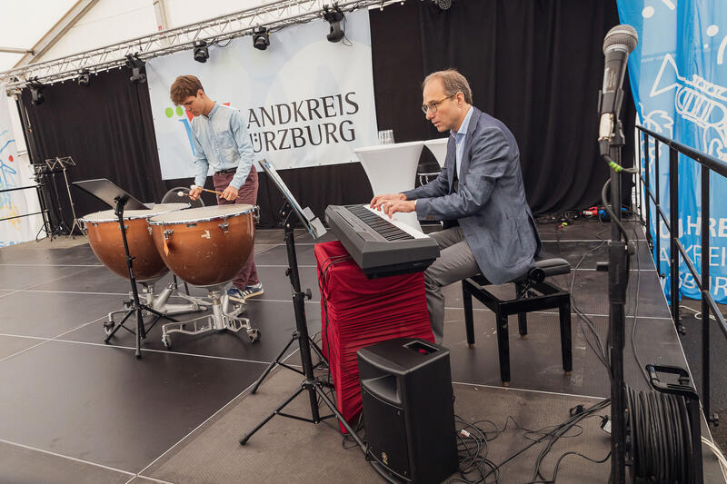 Prof. Dr. Harald Bolsinger ging in seinem Festvortrag auf den WERTEvollen Landkreis Würzburg ein. Musikalisch umrahmten Ensembles der Musikschulen Würzburg, Rottendorf und Veitshöchheim den Festakt, der mit einem gemeinsamen Mittagessen ausklang. Vorher trug der Büttharder Hermann Hehn noch seine Geburtstagsglückwünsche an den Landkreis Würzburg in Gedichtform vor.
