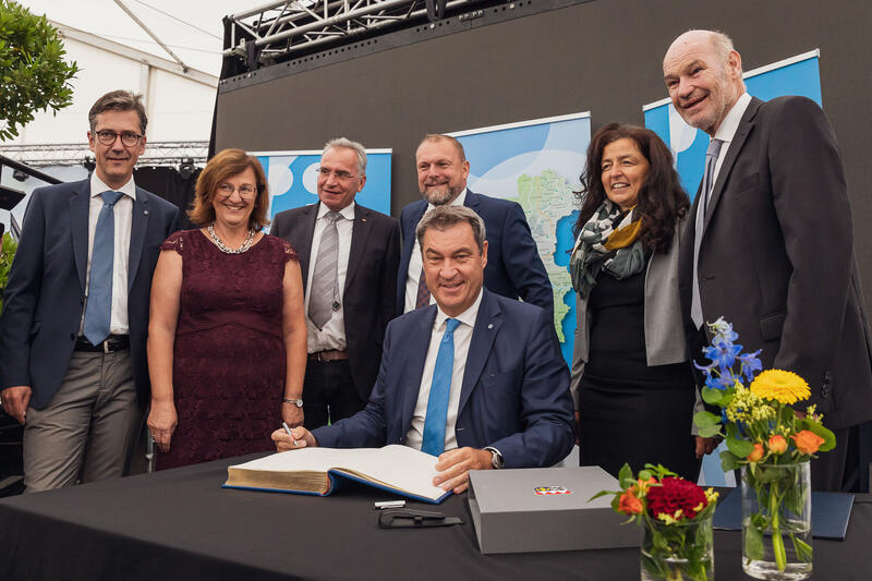 Die Festrede hielt Ministerpräsident Dr. Markus Söder, der sich auch in das Goldene Buch des Landkreises Würzburg eintrug.