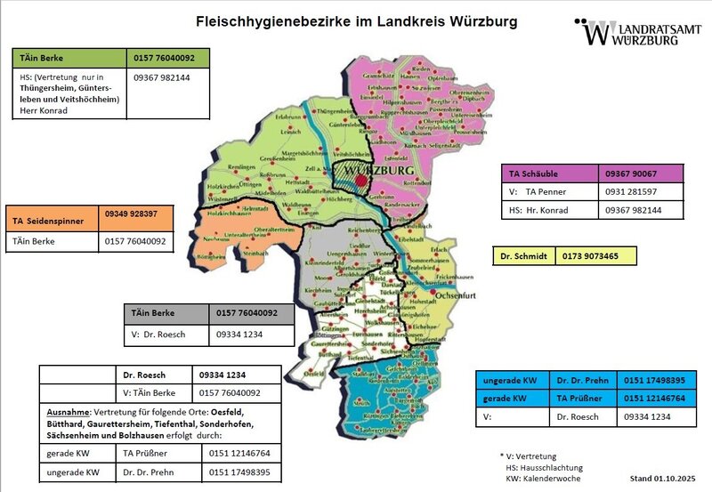 Als Kreisverwaltungsbehörde ist das Landratsamt Würzburg auch für Schlachttier- und Fleischuntersuchungen (früher: Fleischbeschau) zuständig.
