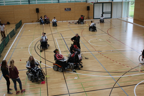 Auch der sportliche Wettkampf durfte nicht fehlen: Beim Blindenfußballspiel kämpften Kreisräte und Bürgermeister tapfer und beim Rollibasketball unterlagen die s.Oliver Baskets haushoch der Mannschaft des Vereins der Rollstuhlfahrer!