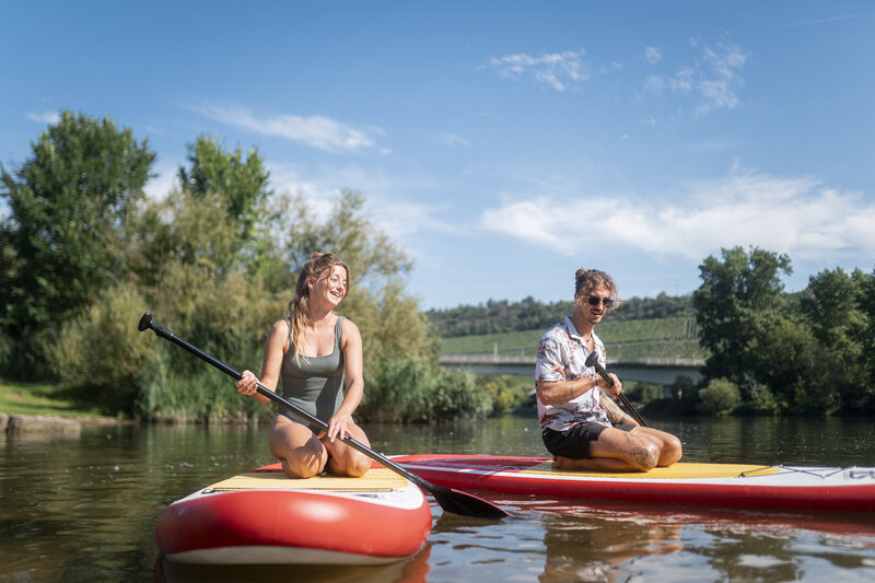 Die Mainlände in Winterhausen ist mit einer schönen Badebucht ausgestaltet. Hier finden Sie unter anderem eine Liegewiese, Sitzplätze und zwei drehbare Liegebänke. Außerdem finden Wasserwanderer ein Gelbe-Welle-Schild zur Orientierung. An den Wochenenden in den Sommermonaten kann man Stand Up Paddle Boards ausleihen.