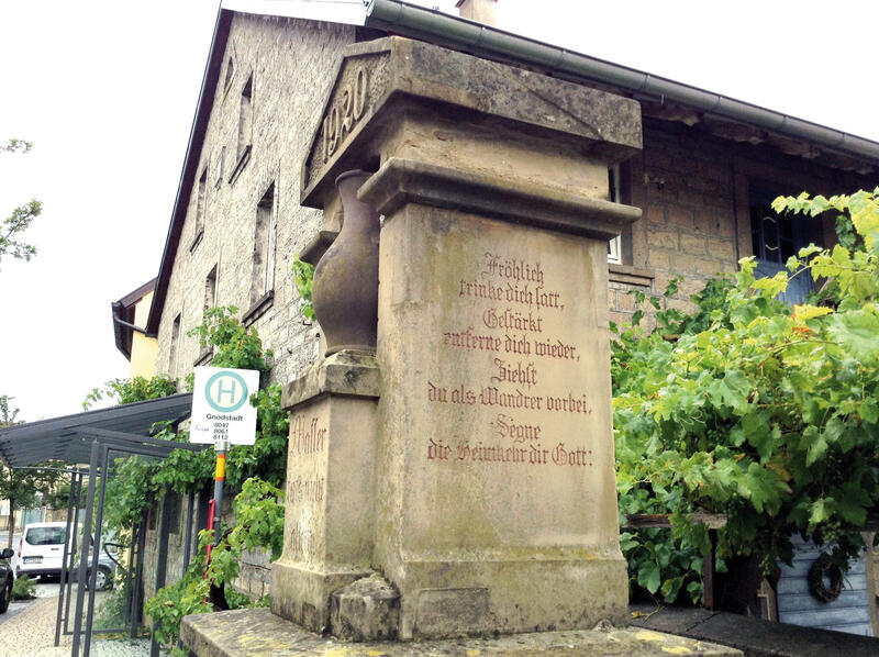 Der Kulturweg Gnodstadt-Marktbreit-Polisina führt zunächst durch das Dorf zum Feuerlösch- und Badeweiher und anschließend zur Kirche mit dem Friedhof. Über die offene Flur erreichen Sie als erste Zwischenstation Marktbreit. Oberhalb des Mains und durch die Streuobstwiesen absteigend folgt das Hotel Polisina. Zurück nach Gnodstadt geht es vorbei an den Stationen Waldhäusle, Güterwald, Flurgeschichte und Bildstock.