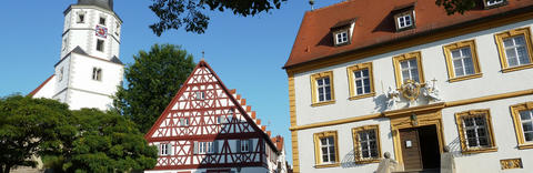Winterhausen, Goßmannsdorf, Sommerhausen: "Sonne, Mond und Steine". Sonne, Mond und Steine…dafür stehen unsere drei Orte am Main. Die Sonne ist im Wappen von Sommerhausen zu sehen, der Mond im Wappen von Winterhausen. Dazu gesellen sich in beiden Wappen Weintrauben, deren Gedeihen in der Sommerhäuser Sonne naheliegt, während in Winterhausen auf einer 1737 gegossenen Glocke zu lesen war: »In Winterhausen wächst der Wein durch Gottes Gnad bei Mondenschein.«Wie kommt nun das einige Kilometer mainaufwärts gelegene Goßmannsdorf dazu? Seine Geschichte ist das Ringen dreier Dorfherren um die Vorherrschaft: die der Herren von Geyer und von Zobel sowie des Würzburger Domkapitels. Bis im späten 19. und 20. Jahrhundert die Steinbrüche zum Arbeitgeber Nummer Eins wurden, spielten die Verbindung zum Main und der Wein eine große Rolle. Dies ist auch die große Gemeinsamkeit mit den beiden anderen Orten. Mit Winterhausen (wo es heute einen »Muschelkalkweg« gibt) betrieb man gemeinsam einen Steinbruch und die Sommerhäuser Steinbrüche begleiten uns parallel zum Panoramaweg – ausgestattet mit einem eigenen Geotop.