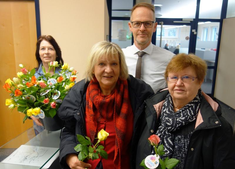 Die Rosen-Aktion des Fachbereichs Kreisentwicklung, der auch für die Umsetzung der Fairtrade-Richtlinien verantwortlich ist, fand großen Anklang und zauberte vielen Frauen ein überraschtes Lächeln ins Gesicht. Bei der Fairtrade-Rosenaktion „Flower to the people“ geht es darum, die Rechte der Arbeiterinnen auf Blumenfarmen zu stärken und um mehr Gerechtigkeit im Blumensektor.