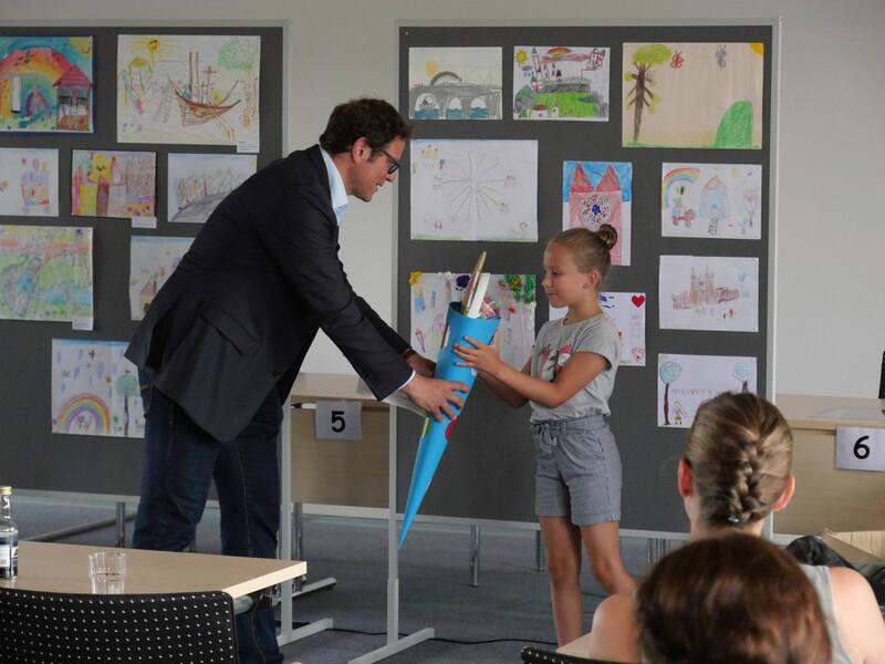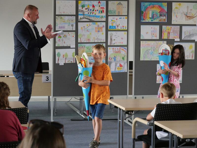 Landrat Thomas Eberth wünschte den Kindern einen tollen Schulstart und viel Freude mit den Präsenten. Diese sollten die Aufregung vor dem ersten Schultag zumindest ein wenig dämpfen und als kleine Belohnung für die „wunderbaren Bilder“ verstanden werden. „Lesen und Rechnen zu lernen, zur Schule zu gehen, ist wichtig, um später sicher mit beiden Beinen im Leben stehen zu können“, so Eberth. „Es soll aber auch immer mit Freude verbunden sein. Lernt neue Freundinnen und Freunde kennen, hört auf die Lehrer und habt Spaß. Und wenn ihr besonders gut seid, dann könnt ihr sogar auch Bürgermeister oder Landrat werden“, fügte er augenzwinkernd an.