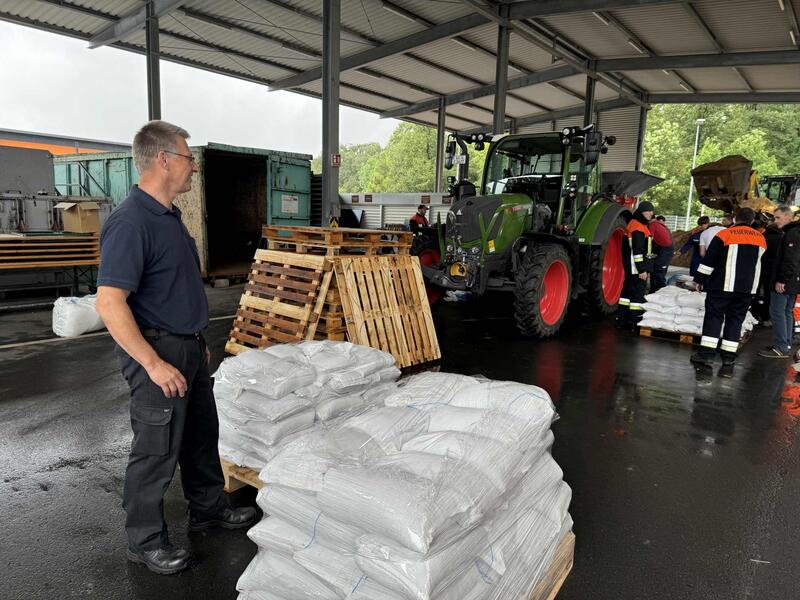 38 Tonnen an Sandsäcken, die von Ehrenamtlichen der Freiwilligen Feuerwehren gepackt worden sind, konnten noch am frühen Samstagnachmittag per Lastwagen in das Krisengebiet geschickt werden.